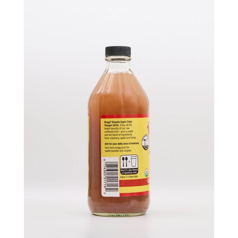 Bragg® Organic Apple Cider Vinegar (ACV). Enjoy our raw unfiltered ACV - plus a sweet and tart blend of ingredients from cranberry, apple and honey.